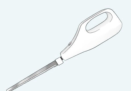 Get speedy cuts in thick foam by using an electric kitchen knife. If you happen to have an electric knife (like the kind used for carving turkey), you can use that to quickly and easily trim your foam to size. These are especially handy if you'll be working on a large project or if you need to cut the foam at an angle. When you're using an electric knife, it's a good idea to line up the foam so the line you're cutting is hanging off of your work table. That way, the edge of the knife won't make contact with the surface while you're cutting. If your foam is less than about 2 in (5.1 cm), it's probably easier to use a rotary cutter or craft knife. You can purchase electric kitchen knives at most department stores. They're usually pretty inexpensive, so it might be worth picking one up if you have a big project to work on.