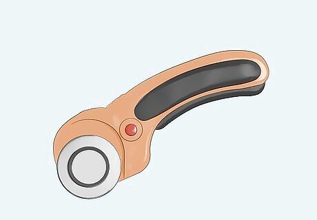 Opt for a rotary cutter to cut thin foam pieces. If your foam pad is ⁄2 in (1.3 cm) or less, a large (60mm) rotary cutter can make short work of the job. Simply mark where you want to cut the foam, then roll the blade over the line you made. Rotary cutters can be useful for cutting curved lines, but they might not be ideal for intricate work. You could also use a box cutter for thinner foam, as long as the blade is about the width of the pad. Sharp scissors may work for this, as well. However, these aren't ideal for cutting thicker pads.