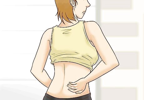 Take good care of your skin under the brace. It is important to be on the lookout for signs of pressure sores or skin breakdown when wearing a brace. This may indicate an improper fit. Check skin daily for reddened or broken skin, which may be caused by rubbing, pressure or moisture. Use a mirror to see your back and check for irritation there as well. Buy a good number of light cotton t-shirts to wear underneath your brace to protect your skin. Be sure the t-shirt fits smoothly with no wrinkles under the brace. Plan to change them often to prevent moisture from gathering against your skin. Only buy seamless shirts, as the seams can cause chafing. Avoid applying lotions as they will soften your skin and lead to more irritation. Instead, try a light application of rubbing alcohol or cornstarch.