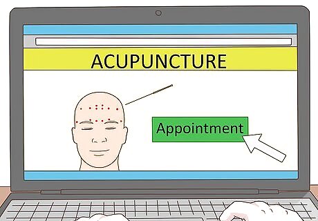 Try acupuncture for a headache. Many people feel relief after an acupuncture session. Make an appointment with an acupuncturist in your area, and see if it works for you. You can ask your family and friends for a recommendation, or search online for someone who has good reviews. Schedule your appointments in advance. If you frequently deal with prolonged menstruation, you'll want to be able to have help readily available.