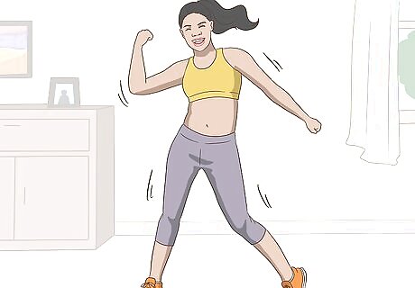 Get some exercise. When you’re dealing with painful cramps, you might just want to curl up in bed. However, moving around might actually help make you feel better. Try exercising most days during your period to increase endorphins and distract yourself from the pain. Try a relaxing swim or a cardio dance class to reduce your symptoms. Plan ahead and schedule multiple workouts during your period. You might need to exercise a few times during a prolonged period to feel the benefits.