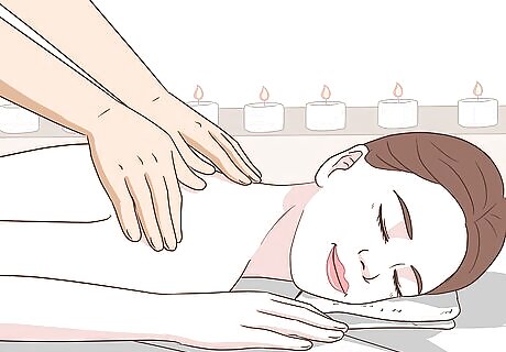 Wind down with yoga. Yoga is great at easing anxiety and acting as a mood booster. Go take a class at your gym or a nearby yoga studio. Ask a friend to go along to make it even more fun. Look for a restorative or gentle class if you want it to be extremely relaxed and soothing. You can also do yoga at home. There are lots of great videos online. If you are regularly dealing with symptoms, try making yoga a regular part of your day.