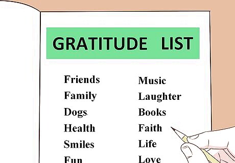 Practice gratitude in your daily life. Practicing gratitude is a great way to increase your feelings of happiness and satisfaction with your life. Practicing gratitude can also help to relieve stress and other negative emotions. Practicing gratitude on a daily basis may also help you to stop dwelling on your feelings of regret and look at positive aspects of your life instead. To practice gratitude, try making a list of five things that you are grateful for. The following day, add five more things to the list. Keep doing this every day. You can start your list with basics such as, your health, your family, a place to live, food on the table, etc. As your list goes on, you might try to add less obvious things, such as a good cup of coffee, the sound of birds singing outside your window, or an unexpected phone call from a friend.
