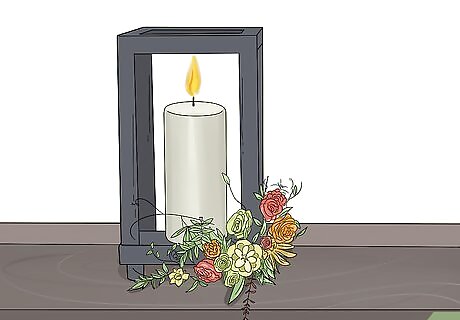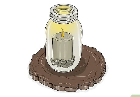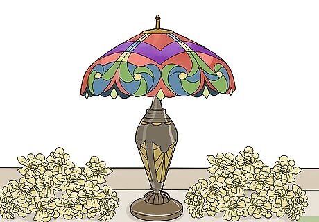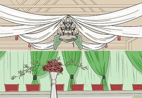Go for an antique art-nouveau look with Tiffany lamps. Place small colorful Tiffany lamps on each table or hang larger lamps from the rafters overhead. They’ll add a nice pop of color to your decor and give your guests a nice, soft light that’s sure to flatter. They were invented in the late 1800s, so they’ll fit right in if you’re going for an artsy, luxurious-yet-rustic theme. Go antiquing to find Tiffany lamps or make a bulk order for small ones online. If you plan to place them on each table, know that you’ll need to have a nearby outlet or power strip.