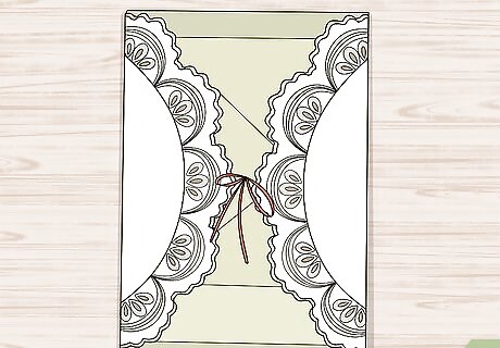 Use white lace or paper doilies as placemats or seating cards. Lace doilies have a delicacy to them that can beautifully balance out all the brawny wood in the barn. Consider using lace doilies as placemats for your guests or, if you have paper doilies, use them as seating cards so your guests know where to go. If you're having a fixed dinner, you can also write down the courses on paper doilies.