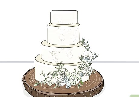Use round cuts of wood for centerpieces or food items. Thin stumps of wood are the perfect way to complement the rustic feel of the barn. Think about displaying hors d'oeuvres, charcuterie, small chocolates, or even your wedding cake on a round cut of wood. You can also spray paint or burn your and your partners’ initials onto the wood and display it near the entrance or guest book. Match the woodcuts to the color of the barn or choose a different color for a smart contrast.