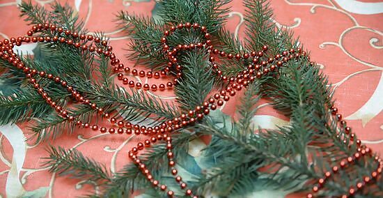 Use pine branches and pinecones for a natural-looking centerpiece. Lay the branches across the length of your table. Scatter pinecones throughout the branches so they're evenly dispersed across the table. Hang small bulb ornaments or wrap tinsel around the branches for added decoration. Put the pine branches and pinecones in a wooden crate in the middle of your table if you want a smaller centerpiece. Visit your local tree farm to see if they sell pine branches or wreaths you can use in your centerpiece. Use faux pine branches if you don’t want to clean up needles.