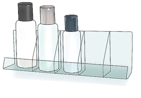 Place your lotions and perfumes in a tray for ease of application. Deep trays with raised edges will work best, since they’ll ensure that everything remains upright. Arrange the bottles from biggest to smallest, or order them into neat sections according to their purpose. Feeling and smelling irresistible will then be as simple as working your way down the line. If you’ve got too many products to fit into a single tray, go through and throw out anything you don’t use to determine which ones make the cut. For a more picturesque presentation, transfer your liquid beauty products to ornate glass containers. Don’t forget to label or color-coordinate the containers so you’ll know what’s in them.