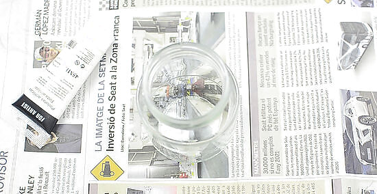 Select your paint. Choose a spray paint for quick and easy application, or choose a brush-on paint to create more detailed designs. Whatever paint you decide to use, make sure that it is suitable for glass surfaces so that it will stick and not easily rub off. Pick a metallic spray paint to decorate your Mason jar and create a striking and sophisticated flower vase or storage container. Select a glitter spray or brush-on paint and add a tea light to create a festive holiday candle you could leave out all year long. Use chalkboard paint to turn your Mason jar into kitchen storage or a fun activity for kids. For an antiqued mercury glass look, choose a mirror spray paint and prepare some white vinegar in an empty spray bottle.