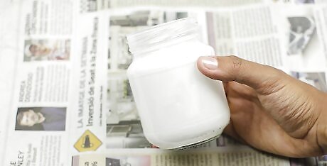 Cover your work surface to protect the surfaces under the jar and around you. Use newspaper or tarp to cover a wide area if you are using spray paint. If you are using brush-on paint, you can use a smaller protectant for your surfaces, such as cardboard or paper towels, since you can be more precise with the application. Regardless of what type of paint you use, always work in a well-ventilated area to prevent harm from the fumes. If you are using spray paint, try to set up your work space outside or in a garage, as residual spray will likely extend out farther than you intend.