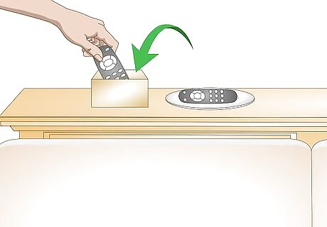 Purchase boxes or dishes to store remotes. Most homes have at least a few remotes, and you can keep them all in one handy place on your sofa table. If you have lots of remotes, a box is a good way to keep them all in one place. If you only have 1 or 2 remotes, a shallow dish is an aesthetically pleasing way to store the remotes. If you have lots of remotes that you don’t use often, store them in the drawer if your sofa table has one or somewhere out of sight. Only place the remotes you use most days on the sofa table. Keeping the sofa table uncluttered will make it look much more elegant.