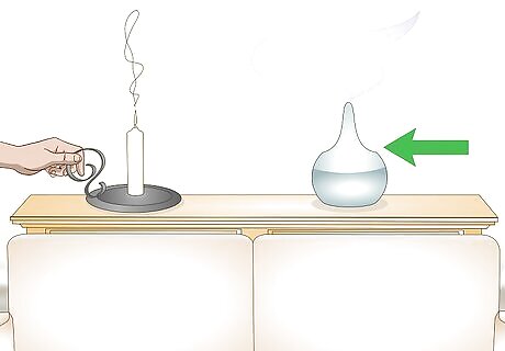 Include candles or diffusers to add decoration and scent. Add nice smells to your living room to make the area feel inviting and luxurious. Choose a decorative candle that fits the color scheme of your lounge and has a pleasant scent. Use multiple candles to create a trendy look, but be cautious of combining too many scents as this can become overwhelming. If you have small children or rowdy pets, candles on sofa tables are best for decorative purposes rather than for functionality. Sofa tables often get bumped making them an unsafe place for open flames, so stick to battery-operated candles instead. Purchase candles and diffusers from homeware stores. Potpourri makes great decoration as well as making your home smell great!