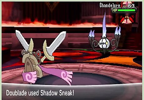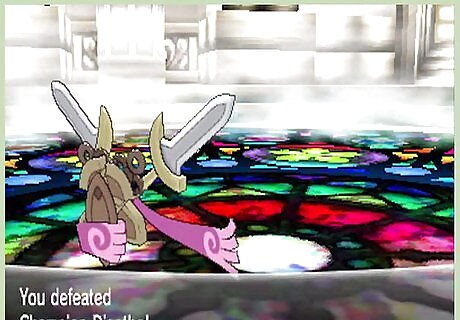 Defeat Malva. The best way of defeating Malva is to use Water-types, but Ground-type or Rock-type Pokémon will work as well. Be wary of her Chandelure, as it's part Ghost-type and has a tendency to use Confusion.