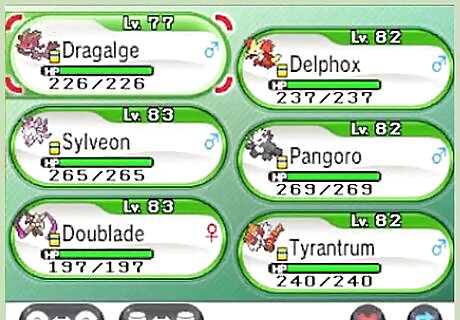 Have a good Pokémon team. It's best to have your team at around Level 60 or higher, as well as a good variety of types. Having a Fairy-type Pokémon, such as Xerneas in Pokémon X, is a good idea for the battles, as well as at least one Pokémon that can Mega Evolve. Have your team full. The less Pokémon you have, the more chance you have of losing if your Pokémon get knocked out. Make sure your team is all roughly the same level. You may have a Grass-type Pokémon in your party, but if it's only level 12, it's not going to make much of a dent before it gets knocked out. The Experience Share usually helps with this, but make sure you train up all lower-level Pokémon on Victory Road.