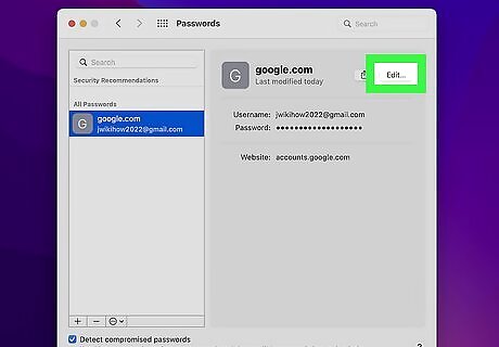 You'll see the Edit button at the top-right corner of the window. This area allows you to edit or delete the password.