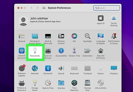Click Passwords. This displays all of the passwords saved to your Mac. As long as you are signed in with the same Apple ID you use on other devices, you'll see all of the saved iCloud Keychain passwords you use on your other Apple devices. If prompted, confirm your password, use Touch ID, or otherwise verify your identity to display your passwords.