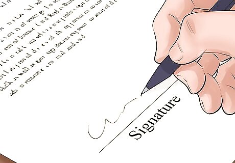 Execute your agreement. Once your agreement has been drafted, you should sign it and offer it to your neighbor. If you and your neighbor have been working together on the issue, the agreement should not have any surprises and your neighbor should be able to sign it soon after reviewing it. If a notary's signature is required, make sure neither you or your neighbor sign until you are in the presence of that notary. In most instances, this document, or its substantive agreements, will need to be incorporated into each property's deed.