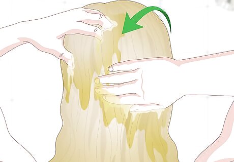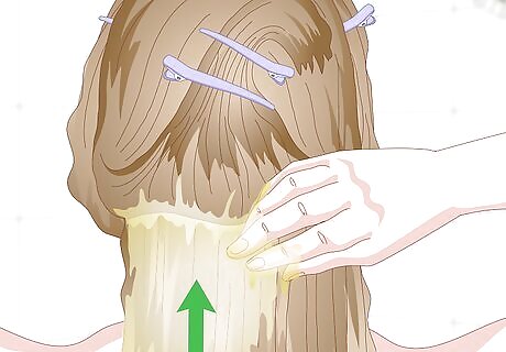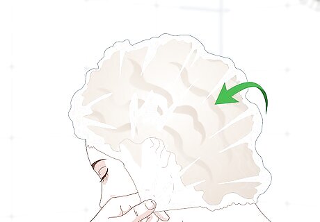 Put a shower cap or towel on your hair to keep the mask from dripping. This will also help keep the mask on your hair and off of your shoulders or the furniture. If it helps, clip all your hair on top of your head first, and then wrap the towel around it or put on the shower cap.Tip: For an extra hydrating boost, run a hair dryer on low over your wrapped hair for a couple of minutes. The warmth will help open up your hair cuticles so it can absorb the mask even more.