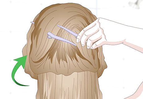 Section your hair so you can evenly apply the mask. Gather the top 1/3 of your hair on top of your head with a hair clip. Gather the middle section of hair and secure it with another hair clip. Leave the bottom 1/3 of your hair down—this will be the first layer you apply the mask to. If you have really thick hair, you may even want to separate your hair into 4 or 5 layers.