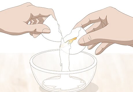 Separate the egg if you want to use just the whites or just the yolks. The yolks will provide extra moisture, and the whites will provide more protein. You can use either part or both parts for your mask!How to Separate an Egg: Crack the egg open on the edge of a clean bowl. Hold the egg upright over the bowl and remove the top half of the shell; pass the yolk back and forth between the two shell halves and let the white part drop into the bowl below.