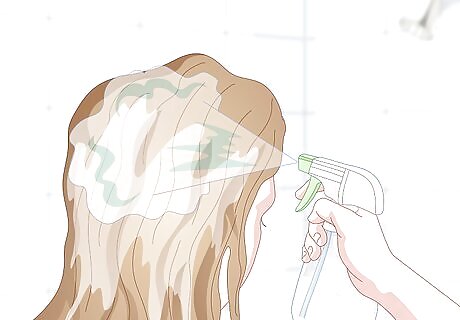 Dampen your hair first if you have thick or tangled hair. It can be hard to really saturate thick, tangled, or curly hair with the mask. You could mist your hair with a spray bottle or simply run water from the faucet or shower over your hair for 15 to 30 seconds. You can gently brush through it afterward or let the mask itself do the detangling for you. If your hair is straight and easy to comb through, there’s no need to get your hair wet first.