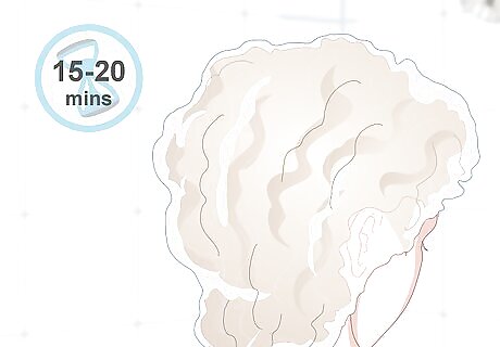 Let the mask saturate your hair for 15 to 20 minutes. Set a timer and sit back and relax. You could clean up the ingredients from making the mask, or take the opportunity to do some other self-care tasks, like applying a face mask or painting your nails. You can leave the mask on for up to an hour, but any more than that and you risk the egg starting to dry out, which would make it a lot harder to rinse away.