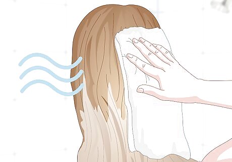 Let your hair air dry to avoid drying it out or damaging it further. Pat your hair with an old cotton T-shirt or a microfiber towel to remove excess water. Gently squeeze out your hair in sections instead of rubbing a towel back and forth. Then let it dry naturally before you style it. If you do need to blow dry your hair, try using the lowest heat setting instead of the highest.