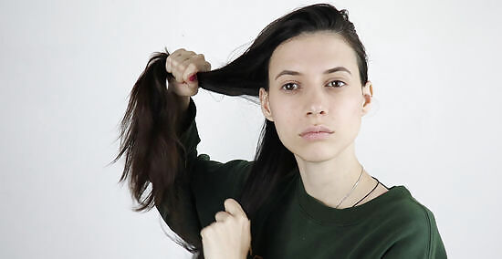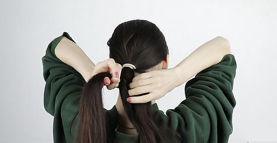 Gather the hair. Pull the hair into a ponytail in the back. Secure the ponytail at the nape of the neck with a hair band. Make sure to use a hair band you don't mind cutting.