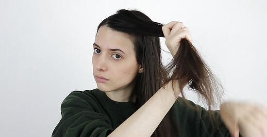 Divide the hair into two sections. Take the hair in both your hands and pull it apart into two even sections. Make sure the sections are neat and no hairs are connected between the two parts.