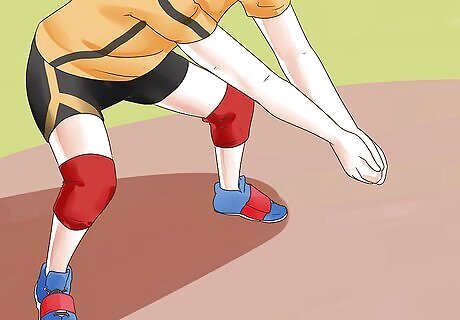 Slide when necessary. Land with enough forward motion to slide on the floor if you need an extra couple inches. Try to slide on your kneepads first, then on your shirts and shorts as you fall forward. Ideally, your hand should land only at the end of the slide, to avoid taking off skin.
