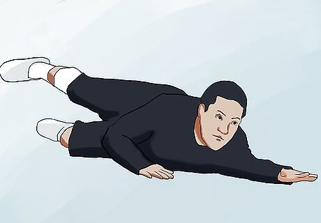 Dive forward as low as possible. Continue the fall until your body is almost parallel to the ground. Push forward with your front foot as hard as you can. Imagine a baseball player sliding forward and reaching his hand out to touch the base before he gets tagged. This is the motion you want to achieve the maximum distance in the shortest time. This is different from an ordinary dive, which may involve leaping up into the air.