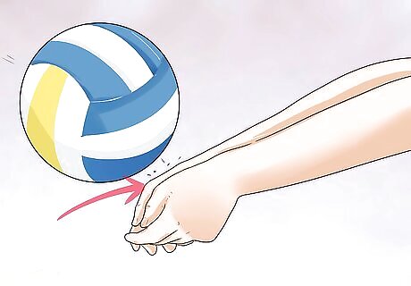 Let the ball bounce off your hand. You are literally making no effort to send the ball upward or provide a better platform. This "Hail Mary" technique will get the ball back into play, but only just. If your hand isn't completely flat against the ground, the ball is likely to bounce awkwardly or fall off to the side.