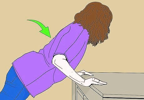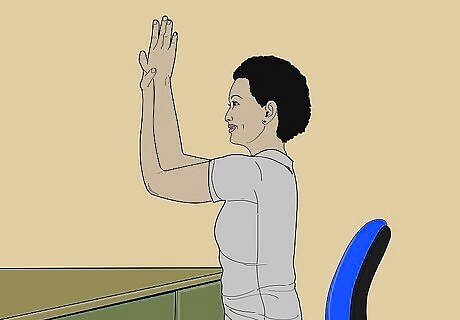 Do desk pushups. Lean against your desk or wall at an angle. Your palms should be on the object shoulder-width apart and your body should be straight. Move your body in, bending your arms at the elbows. Slowly bring yourself back up. Repeat 10 to 12 times.