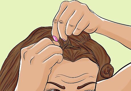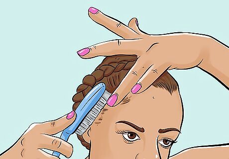 Smooth down the hair at your hairline once you have finished braiding. Use your fingers to apply some hydrating hair cream to the fine hairs at your hairline. Smooth them down and back with a soft bristle brush.