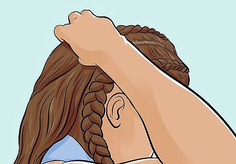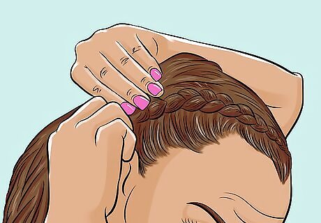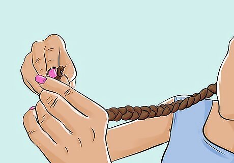 Tie the braid off with a black or clear elastic. Wrap a thin hair elastic a few times around the end of the braid. Tuck the tail under the elastic, then wrap the elastic a few more times. This conceals the end without having to deal with heat-sealing.