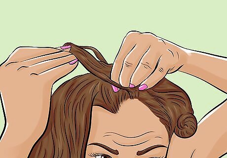 Bring the thinnest kanekalon strand behind your head. Fold the thinnest kanekalon strand in half, and bring it around the back of your head. The looped part should be facing your hairline and the two tails should be hanging down the back of your head.