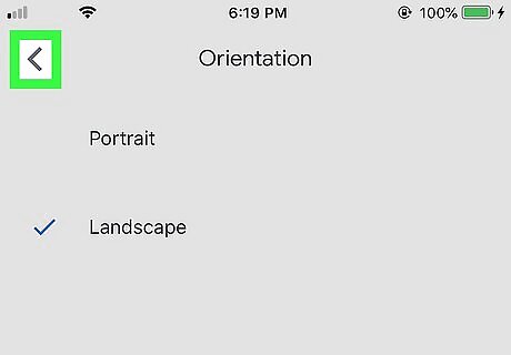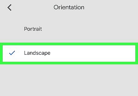 Tap Landscape. A blue checkmark will show up next to the option. This means your document is now set to landscape orientation. Your settings are saved automatically.