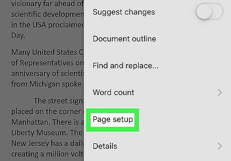 Tap Page setup. It's near the middle of the menu. This will open your page setup options on a new page.