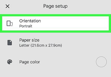 Tap Orientation. It's at the top of the "Page setup" menu.