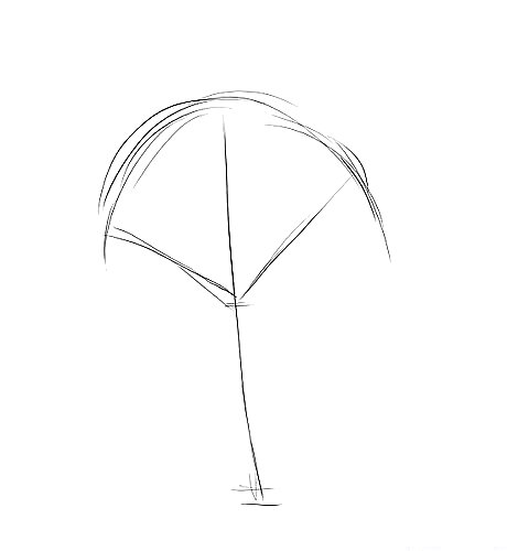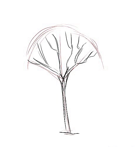 Sketch the trunk and branches. Give it a slim trunk, and forked branches that stay within the curved shape and the Y guidelines.
