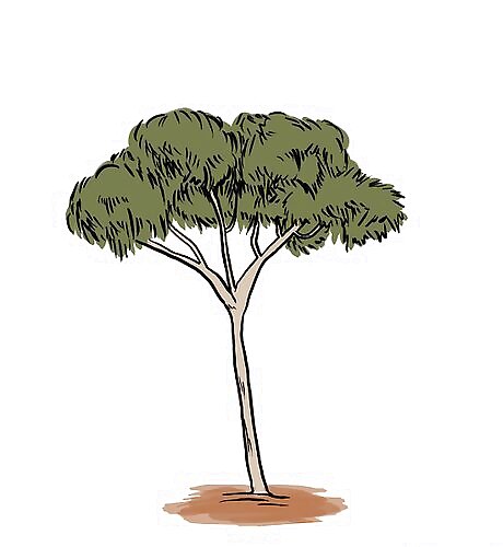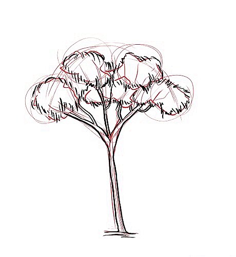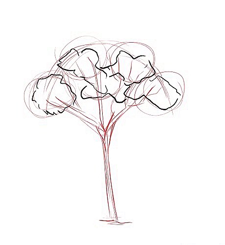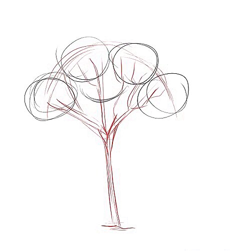 Gum trees often have slightly sparse-looking foliage, so instead of one large shape draw a few smaller circles around the ends of your branches.