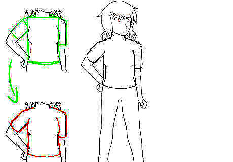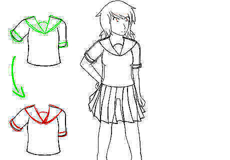 Draw the shirt. The shirt of the sailor fuku often comes down to the hips and will usually have either long sleeves or short sleeves. If you have difficulty drawing the shirt, break it up by shape - the part of the shirt covering the torso is rectangular, as are the sleeves. Depending on how the girl is posing, you may have to use other shapes to connect the sleeves to the torso of the shirt. The material of the shirt is close to that of a formal blouse - it won't cling to the girl's features.
