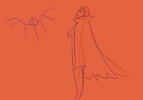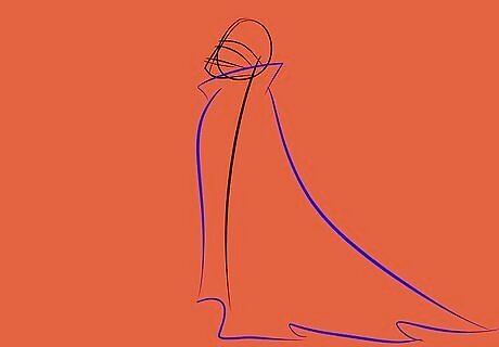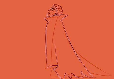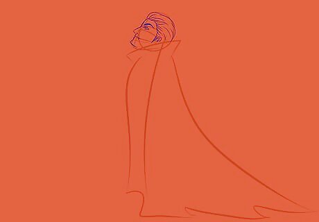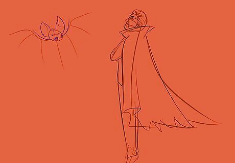 Draw the collar of the vampire’s cape using curved lines. Make it look elaborate and pointed on each tip.
