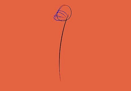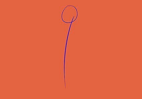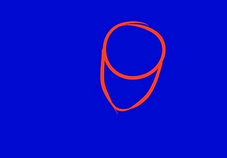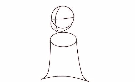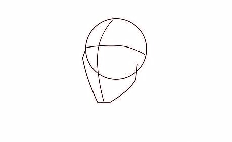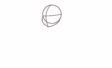 Draw a circle for the head and attach a curved shape with a pointed angle below the circle. Add a horizontal line on the center of the circle and sketch a curved vertical line close to the left side of the circle.