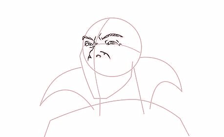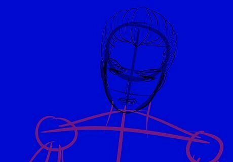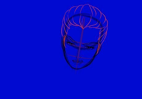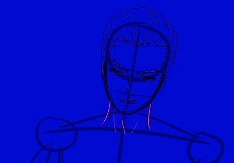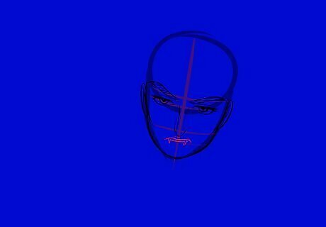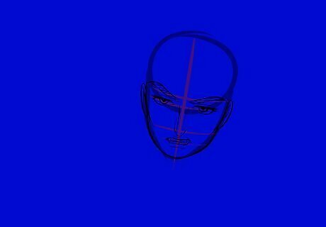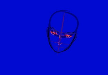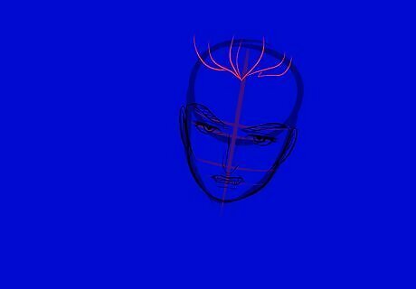 Using the crossed lines as guide, draw the vampire’s eyes and eyebrows. Make it look more intense and mean by adding short lines in between the brows.