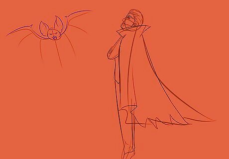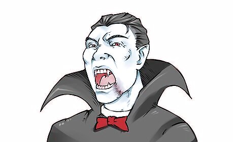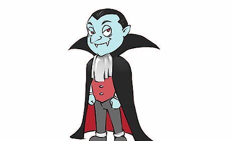Draw the vampire’s hair using slanted and curved strokes. Darken and add details to the vampire’s clothing like a bow tie or anything you want.