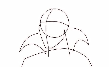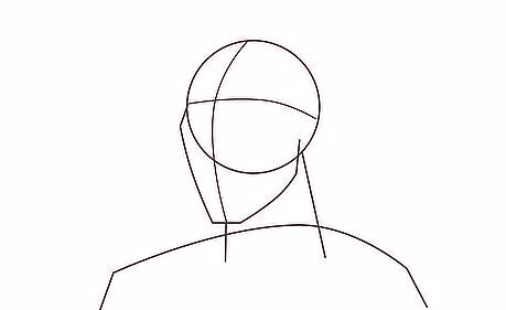 Draw two slanted lines for the neck and add a wide curved line for the shoulders.