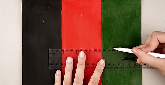 Figure out the width of the bands. The width of the three vertical bands is equal and their size will determine the size of the emblem. If the bands are narrow, the size of the emblem will be reduced proportionately. Measure the breadth (width) of the flag with a ruler. To get the width of the bands, divide the breadth by 3. For example, if your flag is to be 18 centimeter (7.1 in) wide, make three equal bands each 6cm wide.