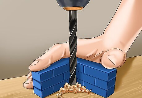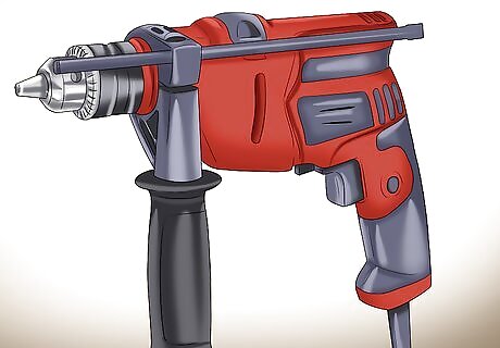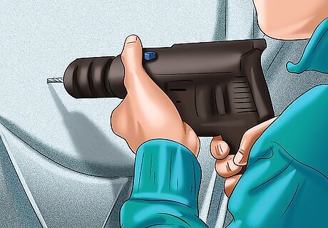 Obtain a suitable drill to use for the project. Metal cutting bits are generally acceptable for metals, and will work for other materials such as wood and plastic, but ceramics, glass, and concrete require special bits to produce good results. Here are some bits to consider: High speed steel bits are good for most non-abrasive materials that are hard enough for the bit to bite. This includes steel, aluminum, brass, and other common metals. They will also suffice for drilling wood, but are not as likely to give good results if splintering or splitting is a problem. Spade bits are suitable for wood, and give a fast, accurate cut, but can also cause splintering if the drill is allowed to wobble, or if too much pressure is applied. Titanium coated high speed bits are preferred for drilling hardened steel, stainless steel, and cast iron, as they can handle higher temperatures resulting from cutting these materials. Forstner bits give excellent results when drilling wood. Auger bits give fast results with some splintering when drilling wood. Carbide/Tungsten Carbide bits will drill through concrete and other hard aggregate as well as most stone materials. These can be difficult to start accurately, and also may require a percussion type drill like a rotary hammer or hammer drill to operate efficiently. Diamond embedded bits and hole saw type drill bits are suitable for hard ceramics and glass, but these material may shatter if good technique is not used.
