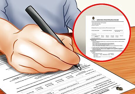 Submit passport photos, copies of your license, and the fee payment. You'll need to include a few other documents with your application, along with a $20 fee (U.S., as of 2019). Required documents include 2 original color passport photos and a signed photocopy of the front and back of your driver's license. If you mail your application, enclose a check or money order for the application fee; you may also need to pay for shipping and handling. If you apply in person, acceptable forms of payment include check, money order, and credit or debit. Outside the U.S. fees vary, but they're generally the equivalent of $10 to $20 USD.